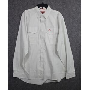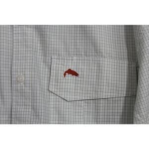Simms Fishing Button Down Long Sleeve Shirt Green White Check Men's Large