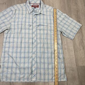 Simms Fishing Products Mens M Medium Plaid Button Down Shirt Short Sleeve J