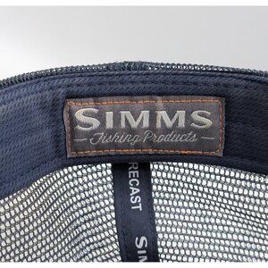 Simms Fishing Products Patch Trucker Mesh Snapback Cap Hat Navy Blue Red White