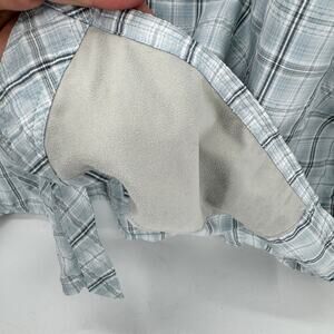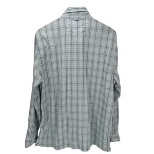 Simms Fishing Shirt Mens XL Bluish Gray Plaid Button Down Long Sleeve Outdoor Polyester Nylon Blend Activewear Coastal Roll Tab Sleeves