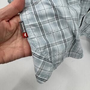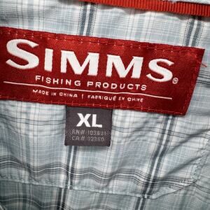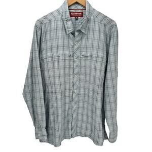 Simms Fishing Shirt Mens XL Gray Plaid Button Down Long Roll Tab Sleeve Outdoor
