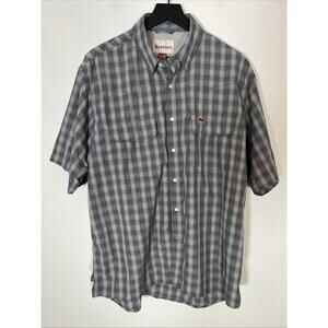 Simms Fishing Shirt Men's size LG Vented Outdoor Western guide pearl snap Gray