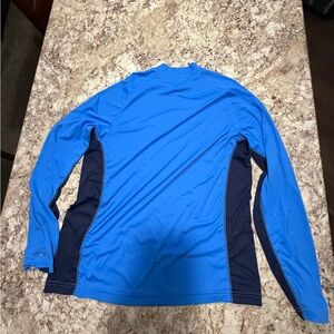 Experience comfort with the Simms two-tone blue rash guard. Ideal for swimming and sun protection.