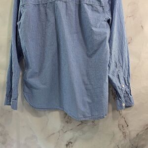 Simms Shirt Mens Medium Blue White Plaid Button Up Long Sleeve Gingham Cotton