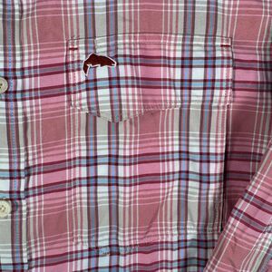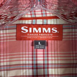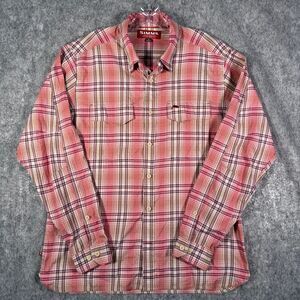 Simms Shirt Mens Size Large Pink Plaid Long Roll Tab Sleeve Fishing Outdoor