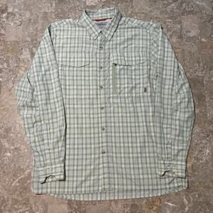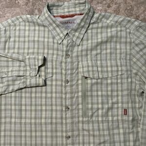 Simms Shirt Mens XL Green Long Sleeve Button Snap Vented Woven COR3 Fishing