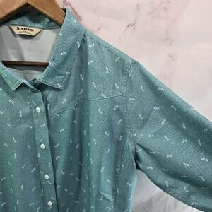 Simms Shirt Women XL Blue Button Up Long Sleeve Dragonfly