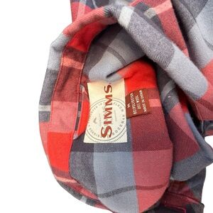 Simms Women's Red and Blue Gray Plaid Button Down Shirt