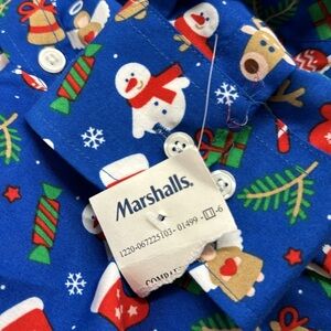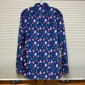 Simon Banks NWT Blue Christmas Print Holiday Long Sleeve Button Down Shirt