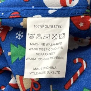 Simon Banks Blue Christmas Print Holiday Long Sleeve Button Down Shirt with Santa’s, reindeer, snowmen, candy canes, angels, stockings, presents…etc. Perfect for your all your Christmas functions.