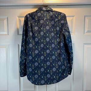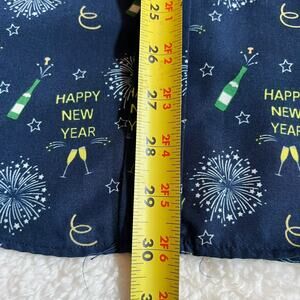 Simon Banks Shirt Mens Medium Button Up Happy New Year Print Party Holiday Blue