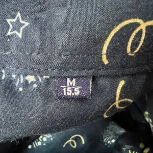 Simon Banks Shirt Mens Medium Button Up Happy New Year Print Party Holiday Blue 15.5