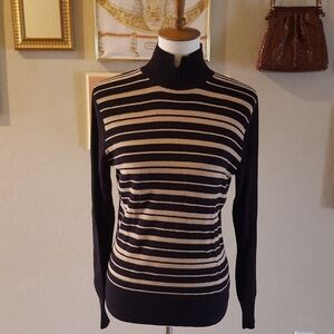 Simon Chang Black and Gold Striped Long Sleeve Turtleneck
