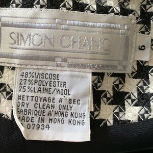 Simon Chang Blazer Women's Size 6 Vintage Designer Black White Hounds Tooth