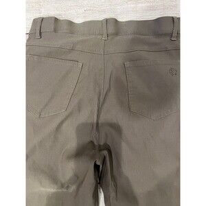 The Simon Chang Denim Brown Stretch Business Office Crop Pants in size 10 are a versatile and stylish addition to any woman's wardrobe. Made from a blend of nylon, spandex, and rayon, these pants feature a solid brown color and a cropped style, perfect for both casual and workwear occasions. The pull-on closure and stretch fabric make them comfortable for all-day wear, while the denim fabric adds a touch of durability. Ideal for the summer and spring seasons, these pants are a fashionable choice for any business or casual outing. There is a small spot on the bottom of the right pant leg - see pictures. 30 inch waist, 10 inch rise and 20 inch inseam. Smoke free home.