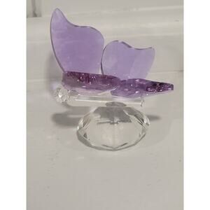 Simon Designs Crystal Butterfly Figurine Amethyst Wings Clear Body 2.5”-3” in good condition no chips or cracks.