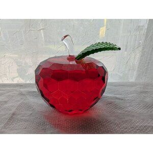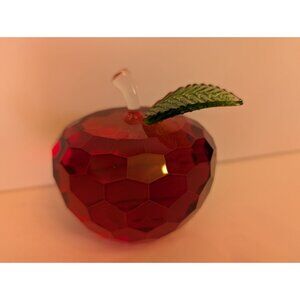 A decorative red crystal apple figurine with a clear stem and green leaf accent. Adds an elegant touch to shelves, desks, or display cases.