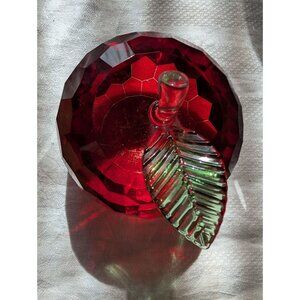 Simon Designs Faceted Red Crystal Apple Figurine With Clear Stem & Green Leaf