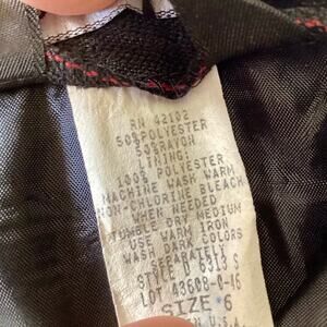 Red pinstripes long pencil skirt by Simon Ellis in good preowned condition. No flaws. Zip fly and button closure at back.