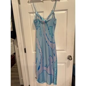 Excellent condition. Small mark on tag (not visible when wearing). Colorful abstract swirls add modernity to this timeless slip dress from Simon Miller.