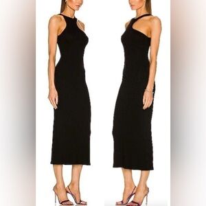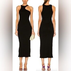 An asymmetrical twist on a classic tank dress made from Simon Miller's custom fitted fine rib fabric.