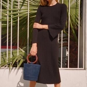Simon Miller NEW Ribbed Black Dress Flare Sleeves Womens Size XL NWT Bodycon