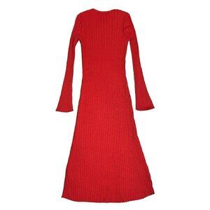 Simon Miller Orange Ribbed Midi Length Long Sleeve Dress - Like New