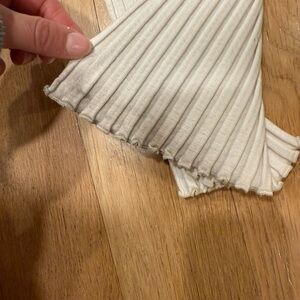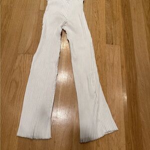 Simon Miller Stylish white ribbed flare pants. Perfect for casual outings. Discoloration on leg and at bottom of hem shown in photos