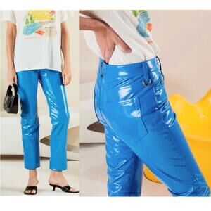 Simon Miller Straight Leg Vegan Leather Pants in Electric Blue Size 28 EUC
