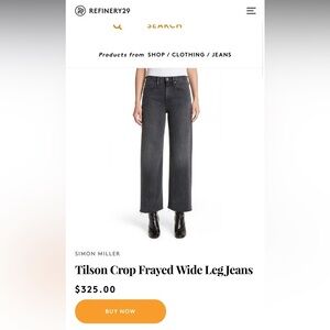 Simon Miller Tilson Crop Frayed Wide Leg Jeans in Blackwash High waist Size 30