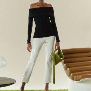 Off the shoulder roll over top with long, fitted sleeves. Features elastic around the neckline so the top sites securely + comfortably on the body.92% mico modal, 8% spandexMade in USA
