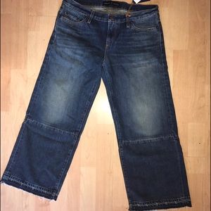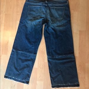 Simon Miller x Barneys New York wide leg crop denim jeans. Great blue wash to them. Looks cool and on trend. Wear with a cute crop top or a loose shirt or sweater and some wedge shoes, heels or platforms.