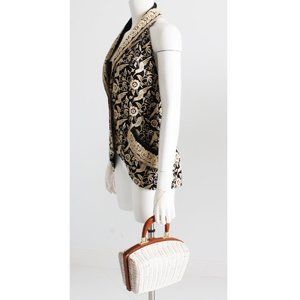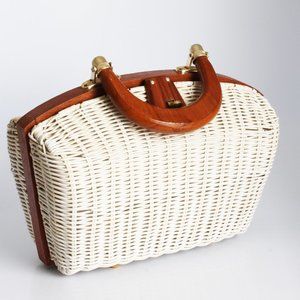 Simon Mr. Ernest White Wicker Bag with Brown Wood Trim Purse 60s Retro