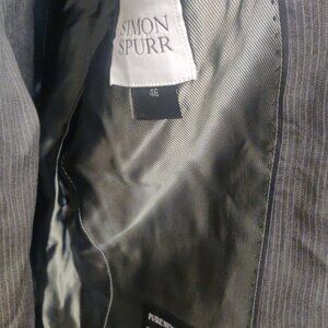 Simon Spurr 36S/30 modern slim skinny fit grey stripe 100% virgin wool bemberg