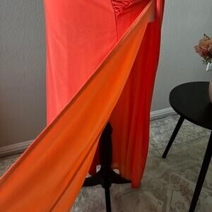 This stunning Simon Miller dress is a showstopper in a vibrant coral-orange hue. Designed with a strapless neckline, elegant side ruching, and a flattering body-skimming silhouette, it’s made to make an impact. The lightweight mesh overlay adds texture and dimension, while the side slit gives it a modern, feminine edge.