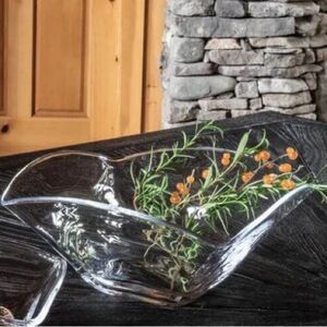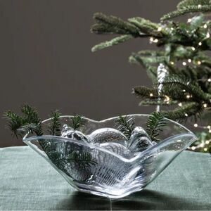 Simon Pearce Woodbury Hand Blown Square Glass Serving Bowl Centerpiece Large 14”