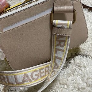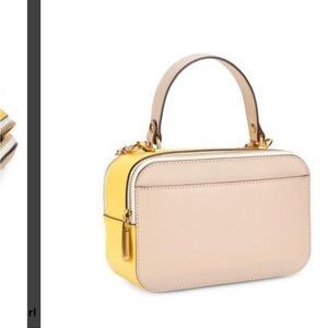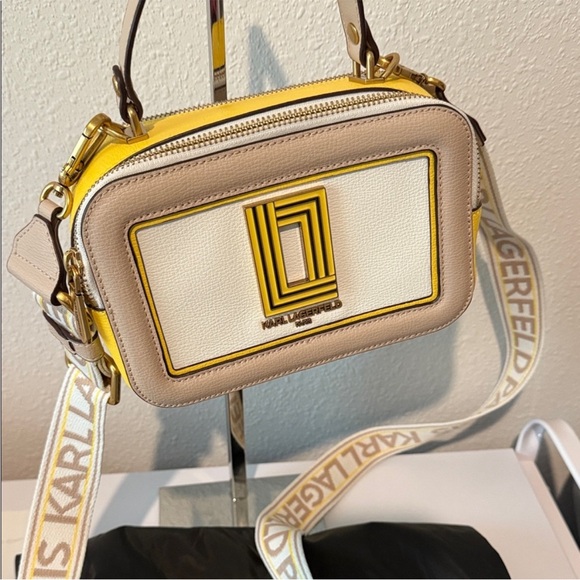 Chic crossbody bag with a sleek yellow and cream design. Ideal for elevating any look.