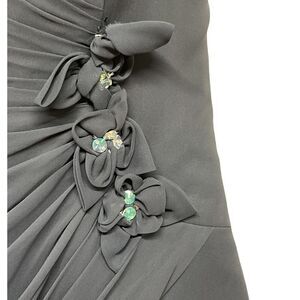 Simple and sophisticated. This Simone Cavalli mini evening gown with ruched side and beaded floral accent in a deep navy is ideal for spring formal events, a cotillion, elevated prom or an elegant bridesmaid dress.
