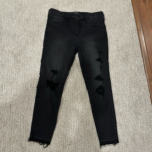 Mint condition high rise ankle jeans with frayed bottom and stylish rips.