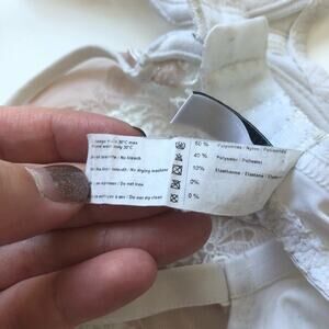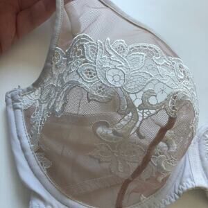 Simone Perele Saga Plunge Bra 32D Unlined Lace White Nude Sheer EUC
