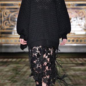 This black Simone Rocha oversized chunky wool knit sweater will make your Granny Ridley proud, after all she wouldn't want you to catch a cold now, would she? Boasting a crew neck, raw frayed hemline that falls to mid-thigh and ribbed edges, this long sleeve jumper has been knitted from pure wool and was inspired by the Victorian and Edwardian era by way of matrons and childbirth (rather apt consideri