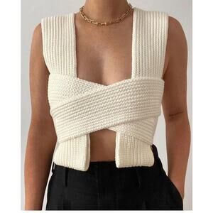 Simonett Nanu Cream Knit Cotton Cropped Multi-Way Wrap Top Size M