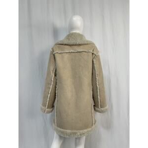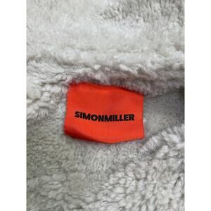 Simonmiller Midi Beige Polyester Jetz Coat Size S: crafted from a luxe faux fur shearling fabric, and features an oversized collar, side pockets and double-breasted front closure.