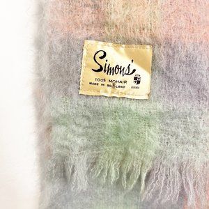 Simons 100% Mohair Vintage Pastel Plaid Fringe Blanket Scarf Shawl Checkered