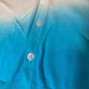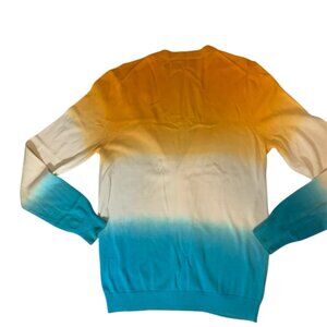 Elevate your wardrobe with the stylish and versatile Simons Le 31 Cardigan for men, offered in a convenient size small. This eye-catching cardigan features a unique ombré color gradient transitioning from a warm golden yellow at the shoulders to a crisp white in the middle, and finally to a vibrant teal at the bottom. Constructed from a comfortable and lightweight knitted material, it's perfect for layering during cooler days or as a stand-alone piece for relaxed occasions. The cardigan includes a classic V-neck design and is equipped with a full button-down front for easy wearability and styling flexibility. Ribbed cuffs and hem offer a snug fit, enhancing its stylish silhouette. Whether you're dressing up for a social gathering or simply seeking a cozy addition to your casual outfit, this cardigan delivers both comfort and sophistication.