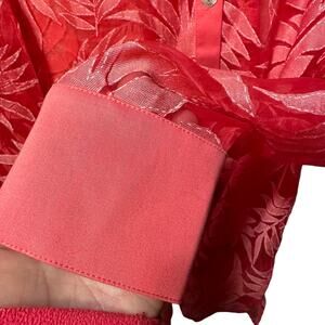 Simonton Says 2 Piece Leaf Print Blouse Tank Set Womens SZ L Sheer Spring Chic
