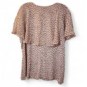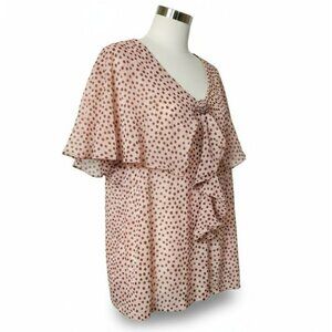 Simonton Says 2X Polka Dot Capelet Blouse Pink/Brown Ruffle Rosette Tie