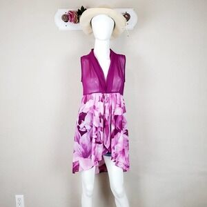 Simonton Says Designed by George Simonton Floral Swim Wear Open Front Cover Up. EUC.