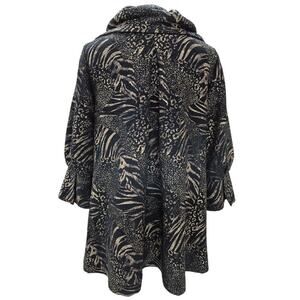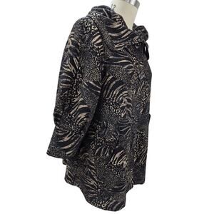 Simonton Says George Simonton 100% Polyester Light Coat Black/Tan Animal Print with 3/4 sleeves, Fully lined Pockets Sz M-