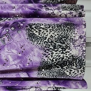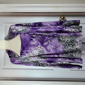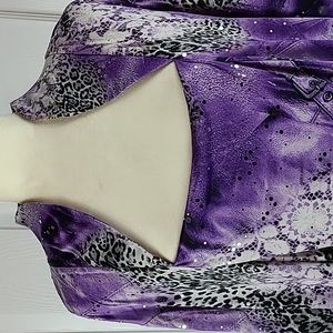 Long Sleeve, Square Neckline Blouse, Mixed Prints, W/ Sparkly Silver Embellishments, in Purple, Black, and White, Size 2X.